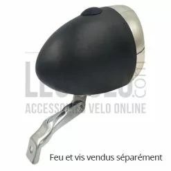Les vis pour la fixation du feu ou l’installation sur la fourche ne sont pas fournies. Ainsi, sont proposées en option selon vos besoins une vis M6 x 40 mm pour la fixation du support à la fourche et une vis M5 x 12 pour la fixation du feu au support. Le support se fixe par l’intermédiaire du trou qui se trouve sur la fourche à l’aide d’un boulon et d’une vis que nous proposons en option, et peut aussi être monté sur la vis centrale du frein cantilever avant.