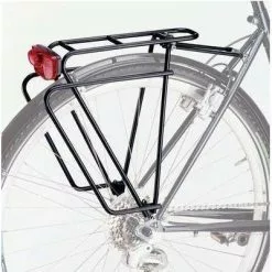 Le support sacoches sur tige de selle offre une double fonctionnalité : le transport d’affaires à l’arrière du vélo et une protection contre les éclaboussures de pluie et boue grâce à son garde-boue intégré, d’une largeur de lame de 70 mm. Ainsi, le chargement sur le porte-bagages ne se salit pas. En aluminium, le porte bagages est robuste et léger à la fois, pour un poids de 850 grammes. Sa forte capacité de charge jusqu’à 10 kilos le rend extrêmement pratique, d’autant que les tubes de protection de part et d’autre permettent d’y accrocher des sacoches vélos latérales.