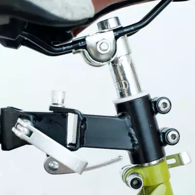 Cette remorque de transport s’installe sur la tige de selle du vélo grâce à un bras de 62 cm de long et à une fixation robuste à deux vis (voir photo 2). Elle est compatible avec un diamètre de 31.8 mm. Des réducteurs, livrés avec la fixation, permettent aussi le montage de la remorque sur des diamètres de 25.4, 27.2 et 28.6 mm. Un espace en hauteur de 59 mm est nécessaire sur la tige de selle pour accueillir cette fixation. Deux attaches rapides sont également prévues afin de faciliter le démontage de la remorque du vélo.