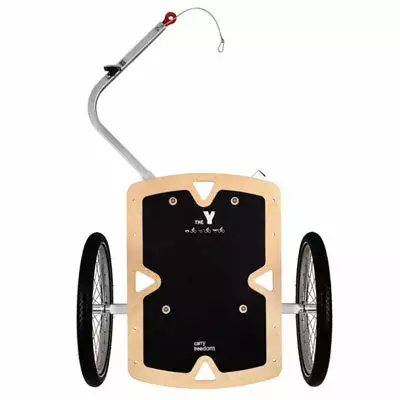La remorque est composée d’un plateau en bois épais lamellé-collé, durable et résistant à l’eau et au temps. La surface dispose d’un film anti-dérapant pour assurer le maintien des affaires. La version 2.2 bénéficie de nouveaux roulements de meilleure qualité au niveau du cadre, moins bruyants, meilleur rendement et meilleure protection contre la rouille. Deux longues sangles velcro sont également livrées avec la remorque pour attacher votre matériel. Le châssis et le timon sont en aluminium anodisé pour plus de légèreté. Le poids total de la remorque est de 8.4 kg.