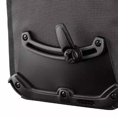 Les sacoches de vélo Sport Roller Plus sont équipées du système de fixation QL2.1 spécialement conçu par Ortlieb. Les crochets de fixation sont directement sur la sacoche qui s’attachent et s’enlèvent du porte-bagages en un instant, sans effort. Ces crochets s’adaptent à tous les porte-bagages jusqu’à 16 mm de diamètre. Pour des porte-bagages dont les tubes ont un diamètre inférieur, Ortlieb fournit des réducteurs de 8 et 10 mm. Le 3ème crochet inférieur sert lui à éviter que la sacoche ne bouge lorsque vous pédalez et qu’elle ne tape la roue créant un déséquilibre.