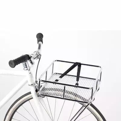 Avec son style minimaliste, ce panier avant n’alourdit pas le design du vélo. La profondeur du panier est de 9 cm. Le fond rectangulaire fait d’un treillage serré a une dimension de 35 x 30 cm. Un tendeur de maintien est fourni. Ce panier facilite le transport de ses courses ou, à l’occasion, un repas à emporter comme le suggère le nom « Take Away ». Il a une capacité de charge de 7 kgs. Vous pouvez opter pour un élastique de maintien additionnel.