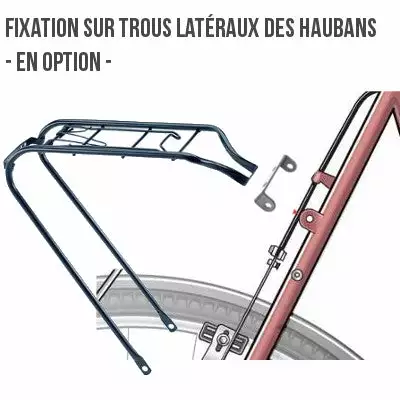 L’installation du porte bagage est simple. Ce dernier s’installe sur les trous de votre cadre, au dessus de votre axe de roue arrière et sur la plaque qui relie les haubans. Si vos trous de fixation sont sur les côtés des haubans, une plaque de fixation pour porte-bagages vous permet de déporter la fixation.