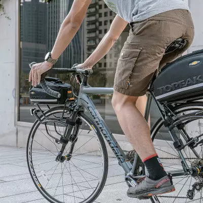 Le porte-bagages avant TetraRack R1 de Topeak est destiné aux vélos ayant une fourche rigide et sans oeillet. Il est compatible avec un grand nombre de vélos parmi les vélos de route, les vélos de cyclotourisme ou randonneuses. Grâce à ce porte-bagages, vous pouvez ainsi équiper votre vélo de sacoches vélo et partir en voyage à vélo peu importe la configuration de votre cycle. De plus, le plateau supérieur du porte-bagages glisse afin de s’ajuster à la géométrie du cadre de votre vélo. Vous pouvez ainsi rendre le plateau supérieur parallèle à la route peu importe l’inclinaison de votre fourche. Attention, ce porte-bagages n’est en revanche pas compatible avec les vélos ayant des fourches en carbone, ni avec les vélos équipés d’un système V-Brake.
