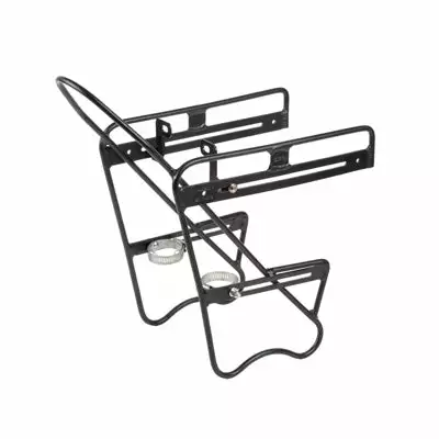 Ce support de taille 300 x 295 mm dispose de traverses servant à installer des sacoches avant à crochets autobloquants comme les sacoches avant Vaude Aqua Front par exemple, sans gêner la roue avant. Sa charge utile est de 2 x 9 kg.