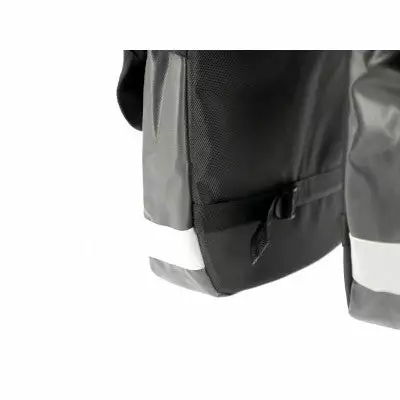 Cette sacoche comprend deux compartiments latéraux à renforts rigides fermés par un rabat à boucle. Elle permet ainsi de protéger ses affaires durant le déplacement à vélo ou à pied. Une poignée de transport facilite le portage à pied. Un cordon élastique à serrer sur le dessus est prévu pour ranger les accessoires tels un parapluie, une pompe ou un vêtement.