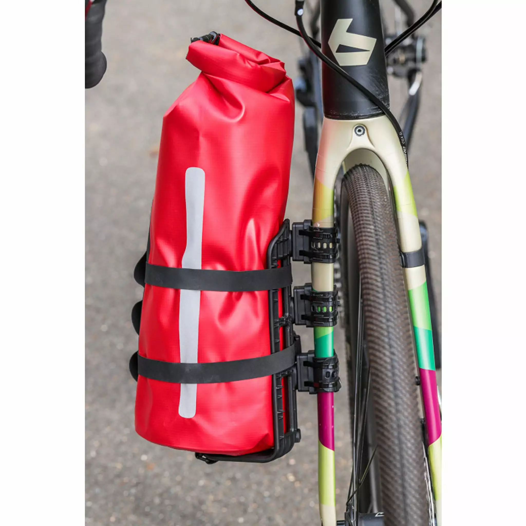 La sacoche Fork Pack a été pensée particulièrement pour les vélos dont les fourches n’ont pas de plots taraudés. L’ensemble se compose du sac étanche, de la cage et des fixations Gizmo.