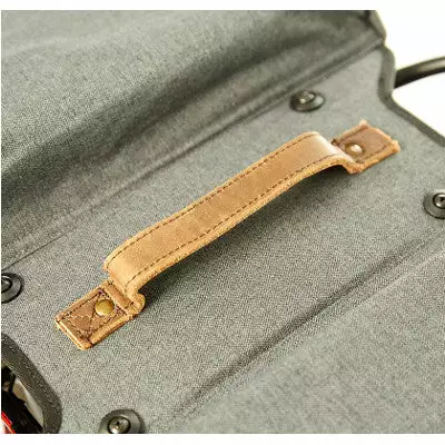 La sacoche double Racktime grise a un design moderne et élégant, avec une poignée et des sangles de fermeture en cuir. Conçue avec un tissu hydrofuge, la sacoche double offre une bonne résistance à l’eau.