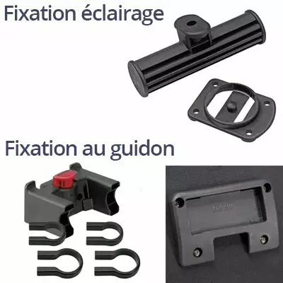 La sacoche Allrounder Touring est la première sacoche à pouvoir accueillir un feu en dessous. Grâce à une fixation pour éclairage fournie, il est possible d’installer en quelques secondes et sans outils une à deux lumières pour vélo. Ainsi, le cycliste s’assure une excellente visibilité à vélo. Une sécurité nécessaire accentuée par les réflécteurs placés à l’avant de la sacoche. Très simple d’installation sur le guidon, la sacoche est livrée sans la fixation sur cintre vélo Klickfix. À savoir que le support de fixation sur le cintre dispose d’un diamètre de 24.5 mm. D’autres fixations de la marque sont compatibles : attache Klickfix sécurisée et des attache guidon Klickfix pour vélo électrique.