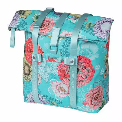 Sacoche vélo Shopper bleue à fleurs 15 – 20L étanche et robuste Basil