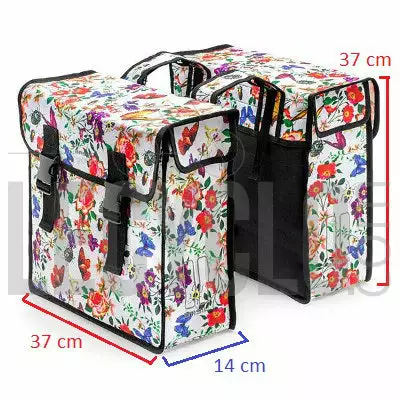 La sacoche à fleurs multicolores Mara XL est une sacoche double pour vélo très féminine avec de jolis motifs printaniers aux couleurs vives pour transporter vos affaires à l’arrière de votre vélo. Elle mesure 37 x 37 x 14 cm et offre une capacité totale de 35L soit 5 kg de chargement par sacoche. Idéale pour la ville, ce duo de sacoche vous accompagne aussi bien au quotidien pour aller au travail ou à l’école, et dans toutes vos balades cyclotouristiques, quel que soit le type de vélo classique ou vélo électrique que vous avez.
