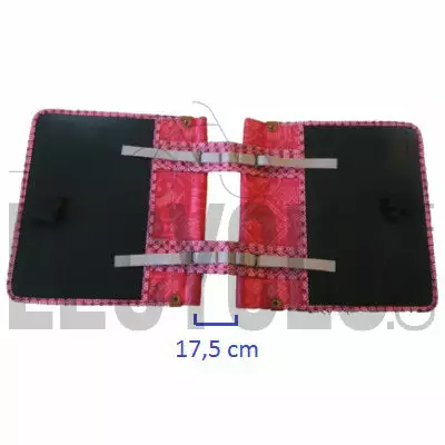 Chacune des sacoches mesure 37 x 15 x 31 cm. Ensemble, elles peuvent atteindre une capacité de 35 litres. Faites dans une matière hydrofuge, elles garantissent une bonne protection de leur chargement. Les sacs sont solidifiés par des bases dures installées dans leur fond. Ils se ferment via un cordon puis d’un rabat à clips couleur nude et marron clair. Avec ses motifs bleus élégants et branchés, la double sacoche de vélo Bohème s’accompagne du couvre-selle bleu indigo Bohème.