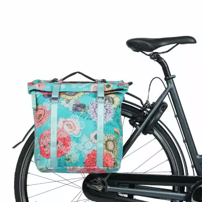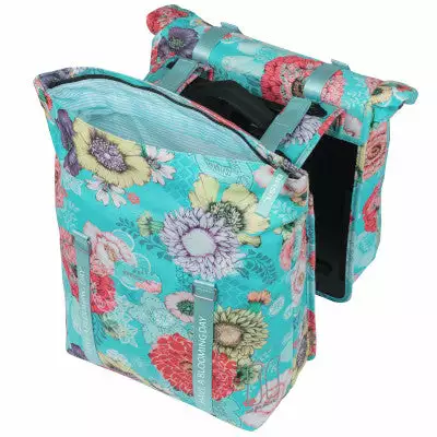 Double sacoche vélo étanche fleurie bleu ciel Bloom Field Basil de 35L