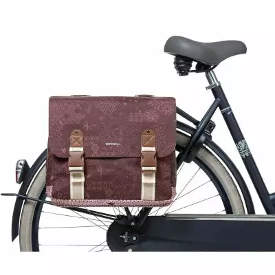 Pour le transport de ses affaires ou de ses petites courses à vélo au quotidien, Basil propose une double sacoche arrière pratique et stylée dans sa collection Bohème rouge vintage.