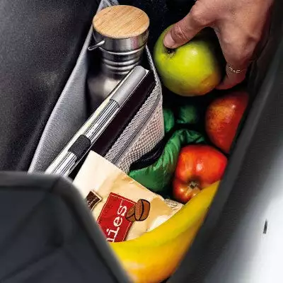 Pratique, cette sacoche Ortlieb s’ouvre et se ferme d’une seule main grâce à un rabat à fermeture rapide magnétique. À l’intérieur, une pochette zippée permet d’isoler les petits-objets comme le téléphone ou le porte-monnaie. Cette pochette dispose d’un range-stylos et d’un mousqueton porte-clé. Une fois rempli, la Velo-Shopper reste stable et rigide : elle est renforcée de l’intérieur et possède des patins de protection sur sa base pour la maintenir debout.