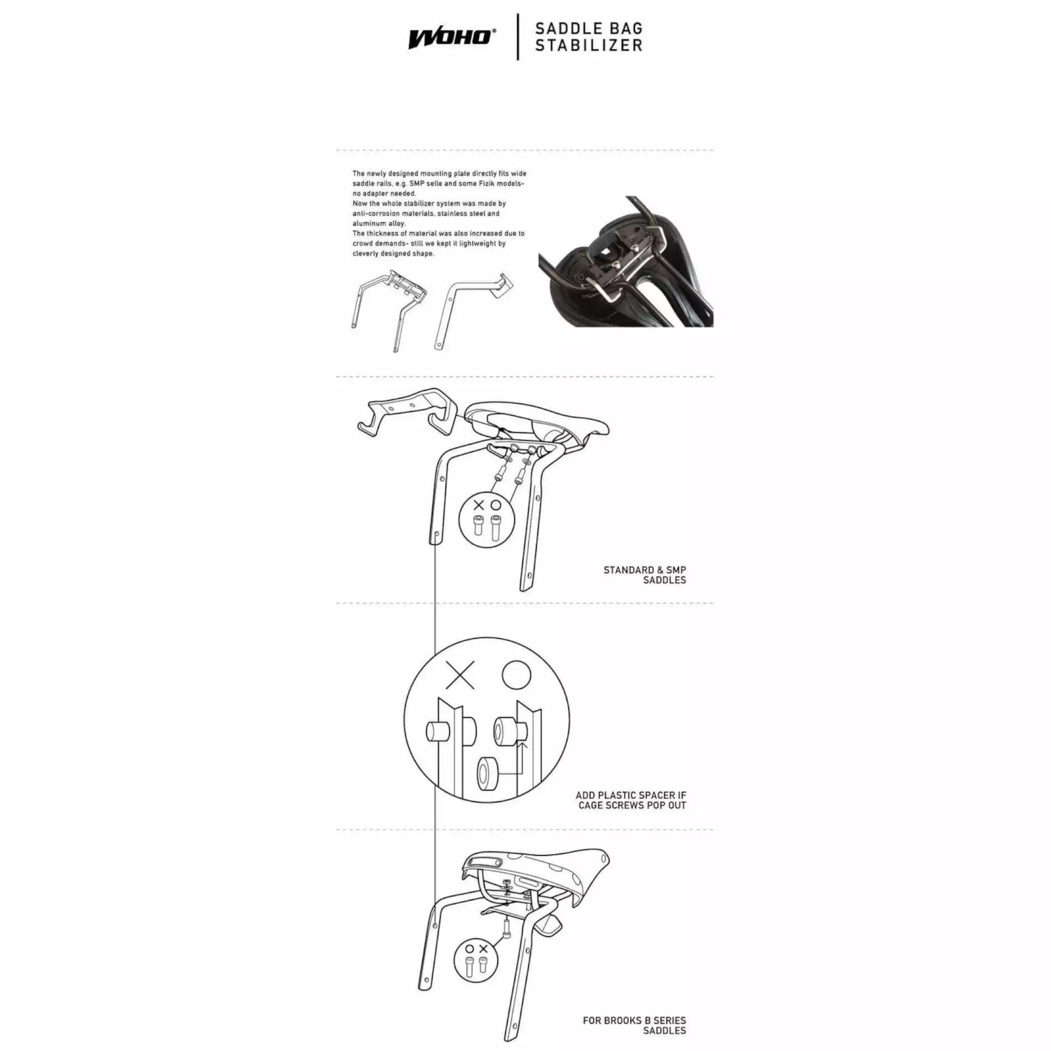 Découvrez le stabilisateur Woho pour sacoche de selle. Compatible avec de nombreuses selles, il permet d’éviter un mouvement gênant de balancier à l’arrière de votre vélo.
